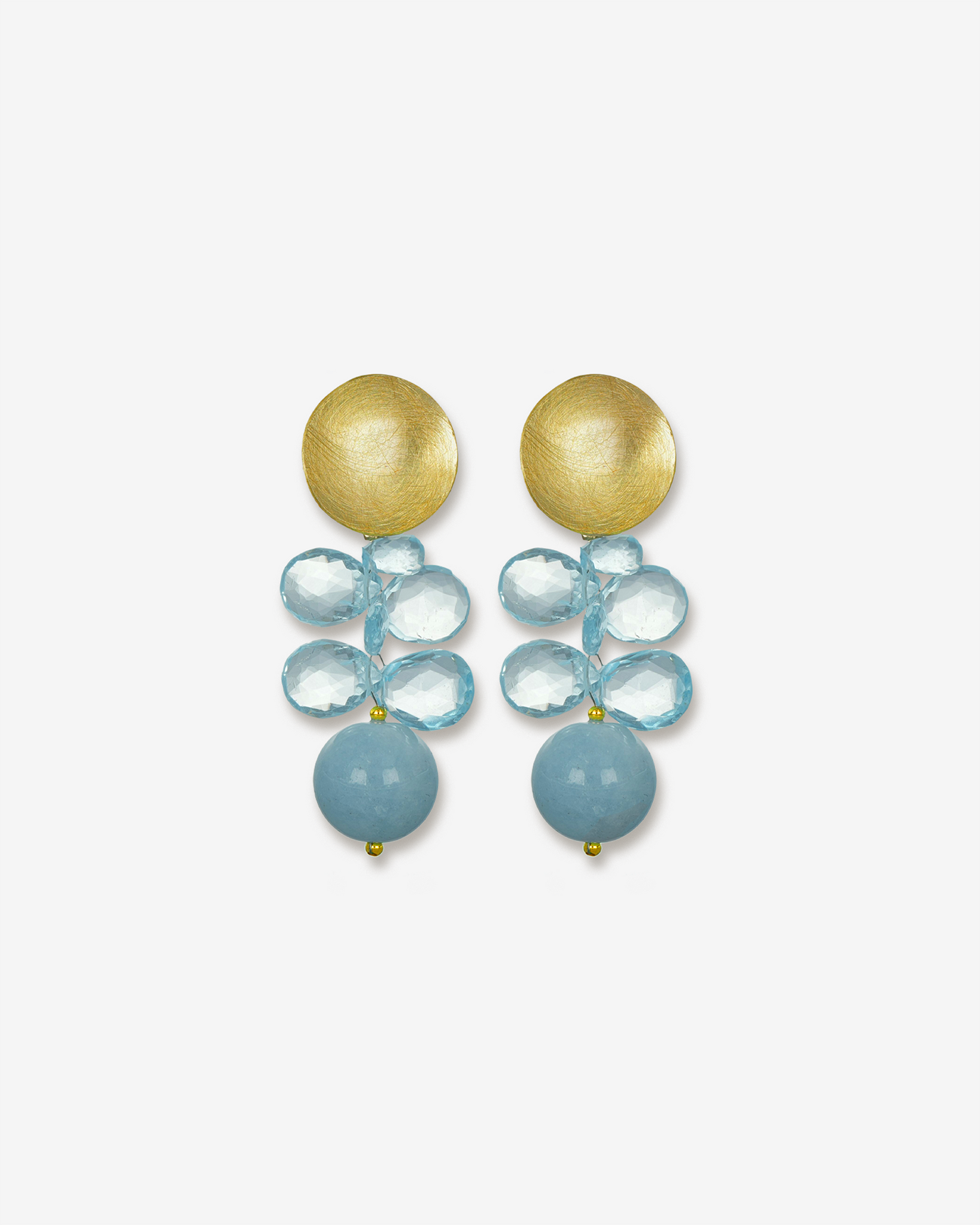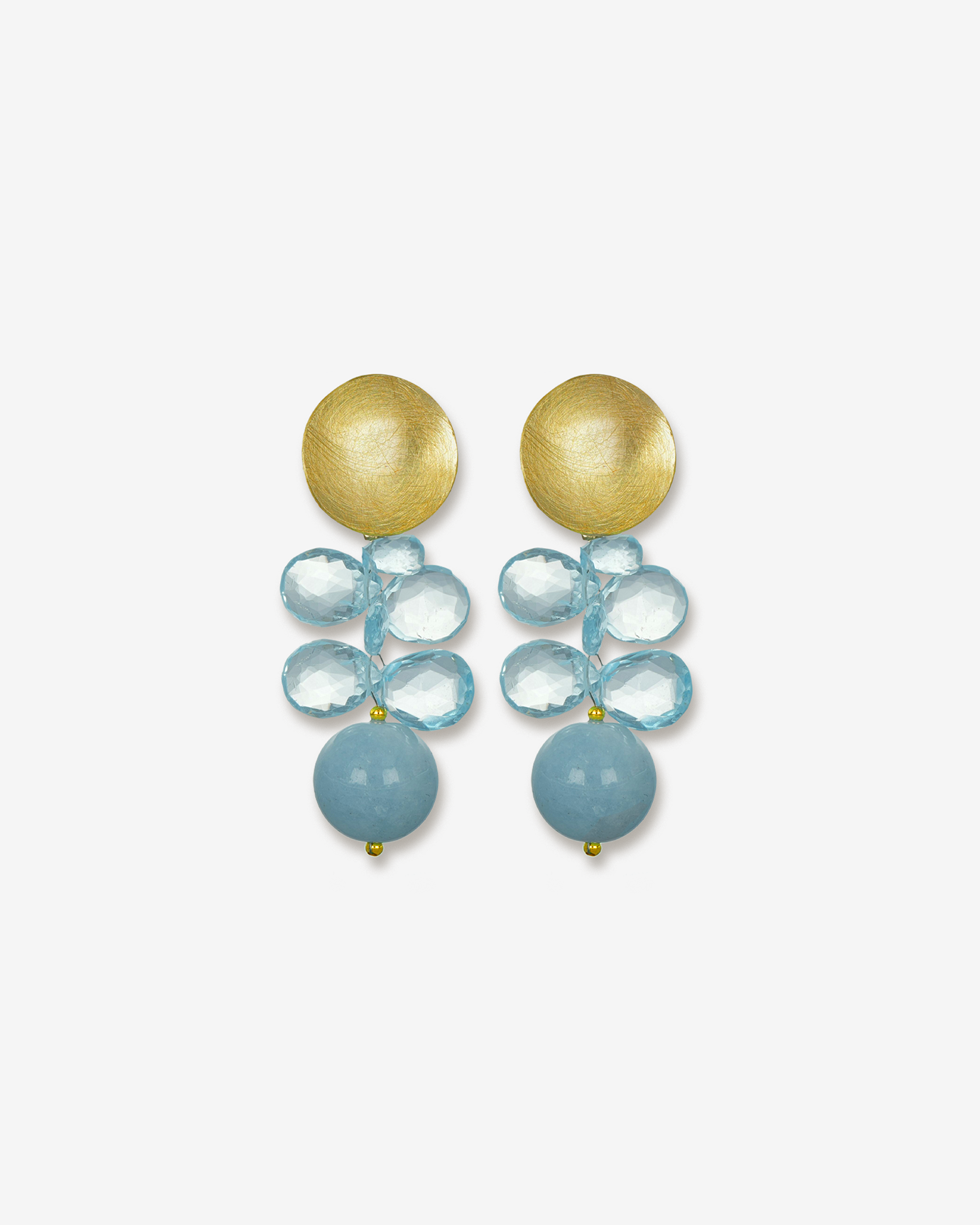 Bring your looks to life: The Angelica earrings, crafted from high-quality 925 sterling silver, combine a matte brushed round top with delicate faceted topaz pearls and a gently shimmering aquamarine sphere . The delicate interplay of cool blue and warm gold adds lightness and a fresh pop of color to any outfit.