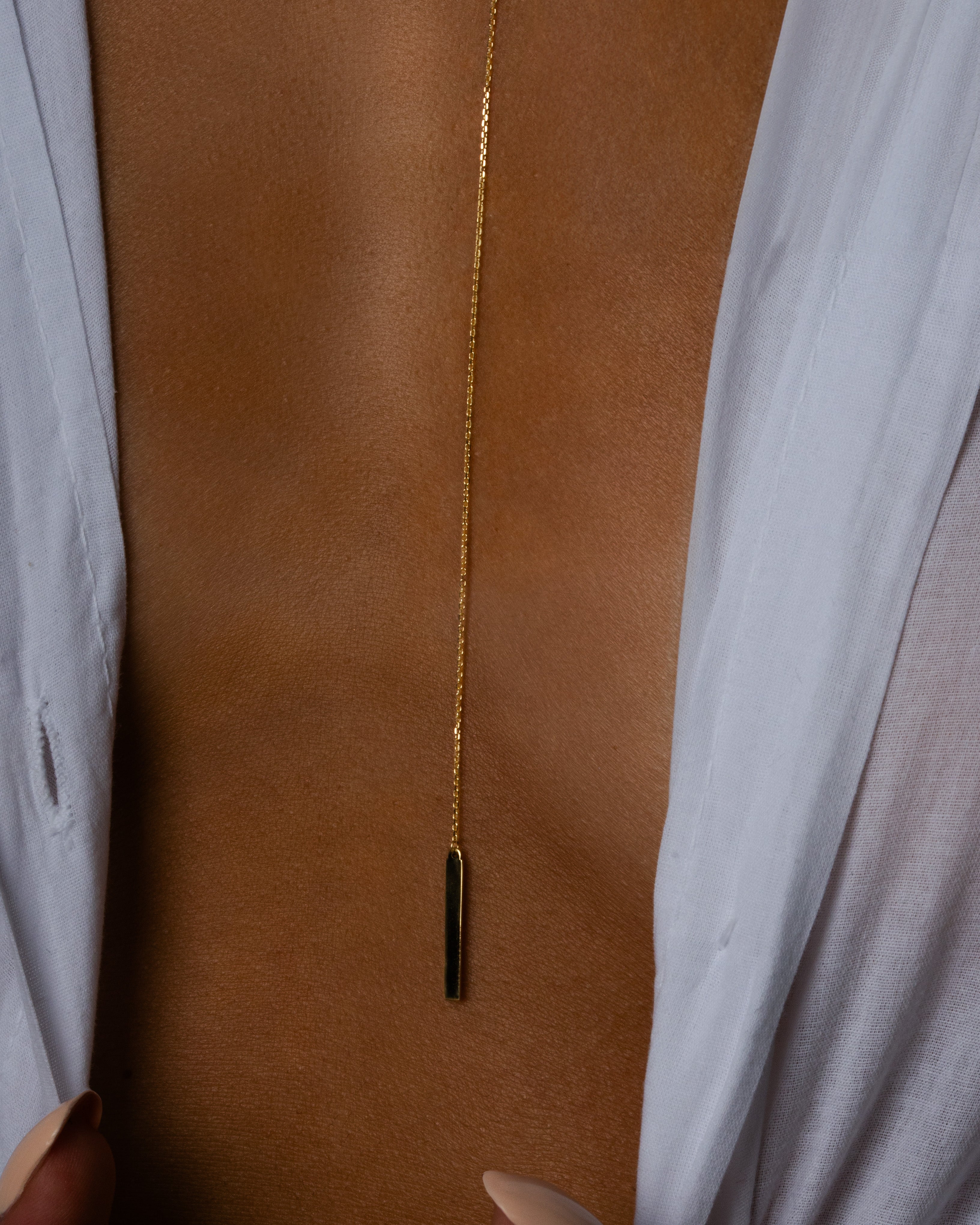 The Oriana Y-necklace is a real eye-catcher that impresses with its simple but elegant length and also impresses with its adjustable design. Made from the finest 14-carat gold, this necklace adds a luxurious and stylish touch to any outfit.