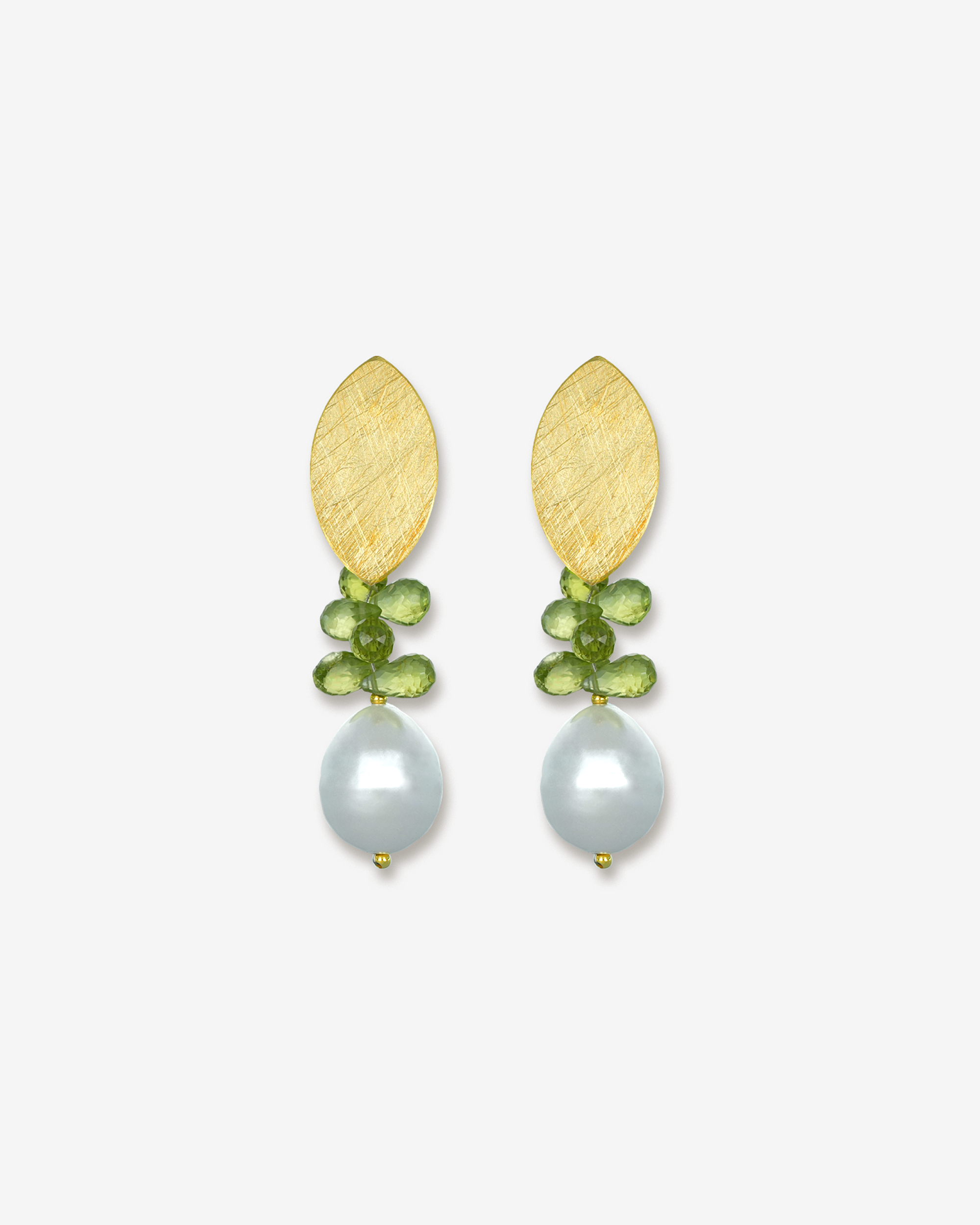 Gönn deinem Look ein Hauch italienischer Leichtigkeit: Die Benedetta Ohrhänger aus 925er Sterling Silber verbinden organische Formen mit edlen Natursteinen. Ein matt gebürstetes Blatt-Oberteil trifft auf funkelnde Peridot-Perlen und endet in einer filigranen Süßwasserperle – für ein einzigartiges Spiel aus Grün- und Goldtönen.