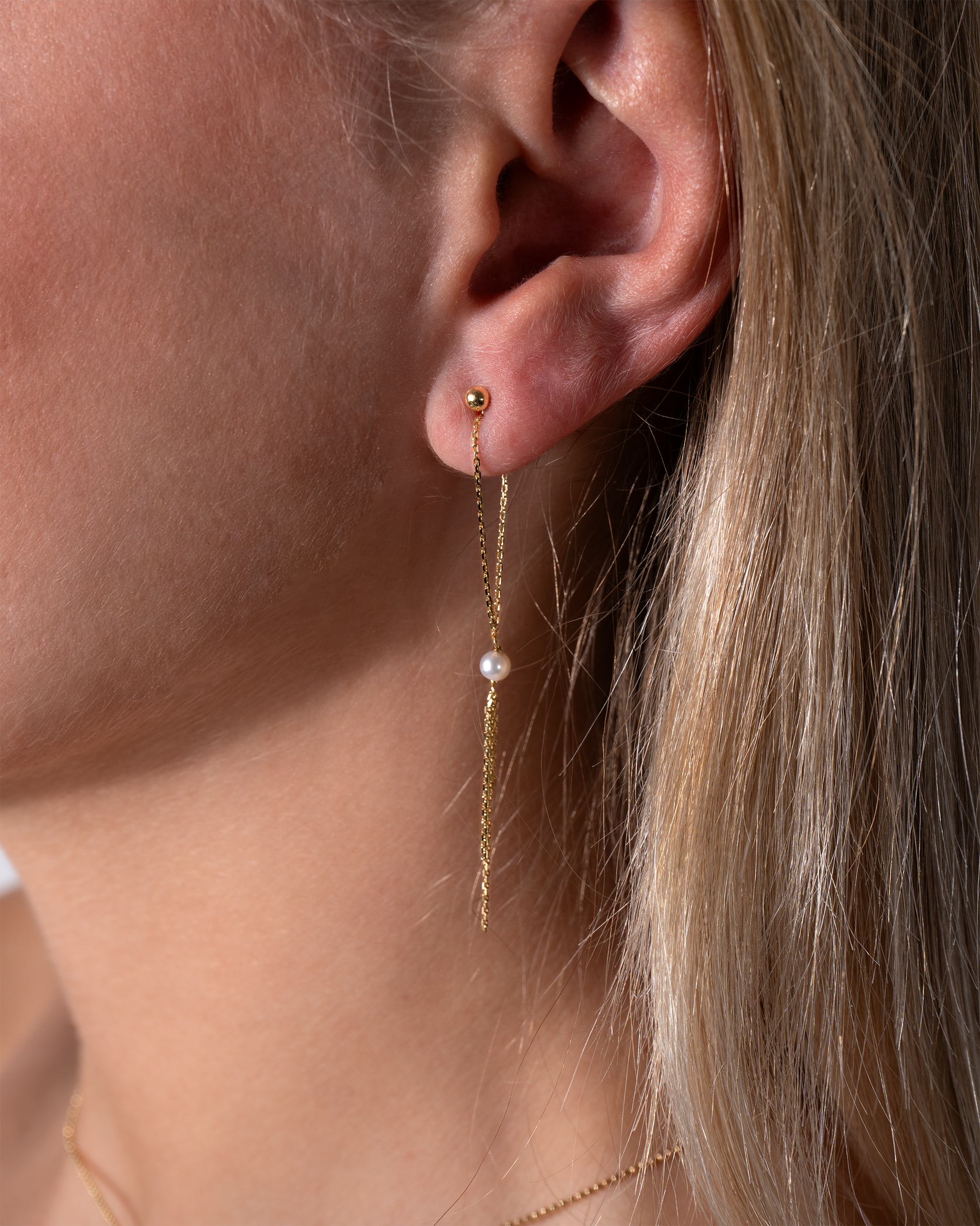 Entdecke die Cecile Ohrringe: Ein feiner 14 Karat Gold-Stecker, von dem eine zarte Kette sanft hinabfällt und in einer schimmernden Süßwasserperle mündet. Das minimalistische Design wirkt elegant und luftig – perfekt, wenn du Stil zeigen willst, ohne laut aufzutreten.